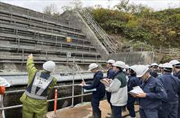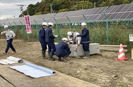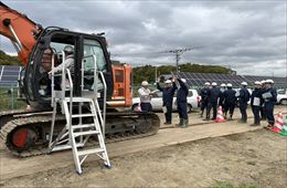 令和7年8月4日、陸上自衛隊岩見沢駐屯地第12施設群第400施設中隊の隊員約30名を対象に、当社作業所(長沼14区外72工区)にて現場研修を実施しました。