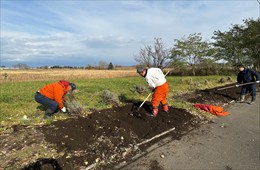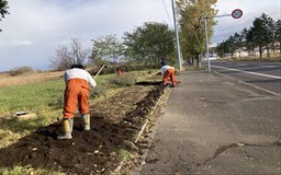 当社は、2008年北海幹線用水路の改修に伴い、金志揚水機場(岩見沢市志文町986番地)の改築を行いました。これを機に、農業用水路の景観を維持することを目的とした「疏水ほっかい愛護活動」に参加し、2009年から、金志揚水機場の周辺整備を始めています。当活動は、5月の花壇整備、6~8月にかけての草刈り、11月の花壇冬支度を一年の活動として実施しています。